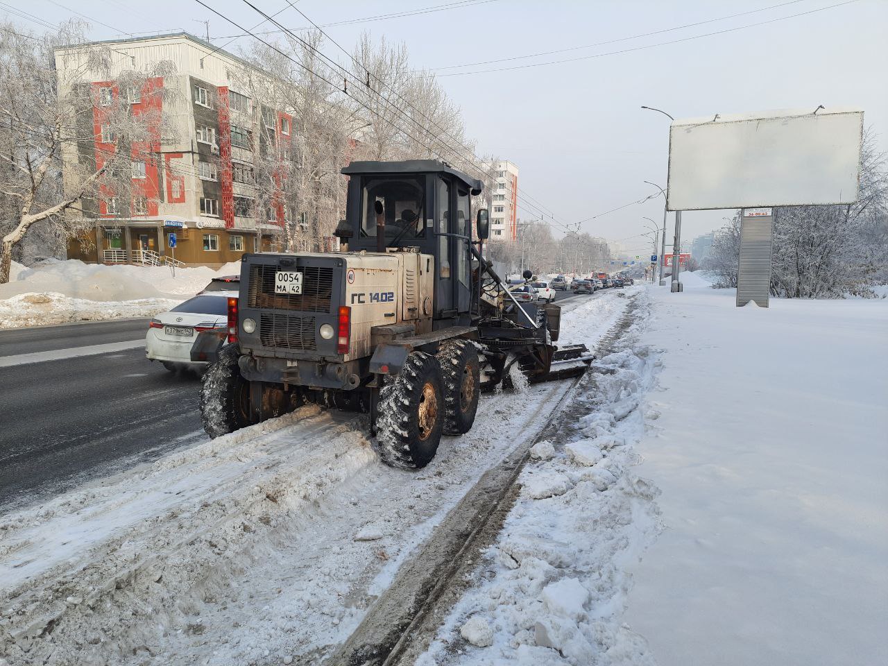 Вывоз снега и борьба с гололёдом: в Кемерове дорожные службы в дневную смену задействуют более 120 единиц спецтехники