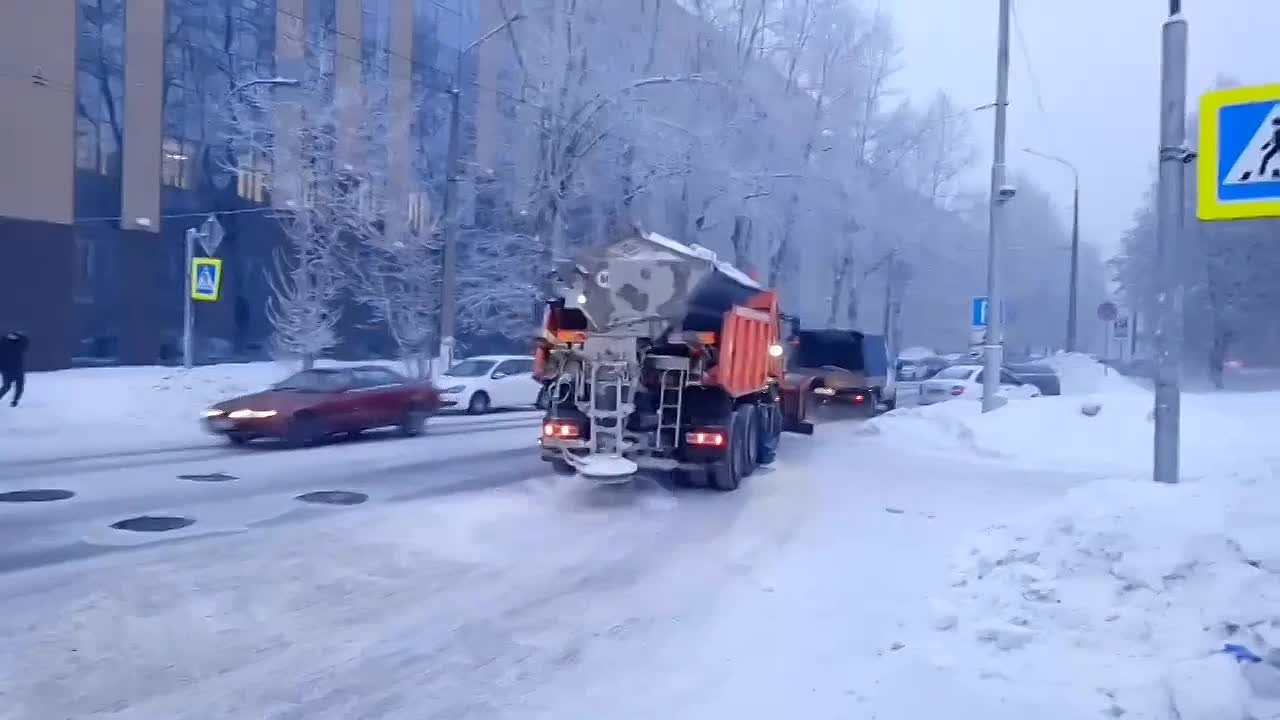 Из-за морозов на некоторых участках гололед. Мобильные бригады вручную подсыпают остановочные площадки, чтобы жители могли безопасно подойти к автобусам и троллейбусам. Проезжую часть обрабатывают с помощью дорожных механизированных комплексов. Сегодня в дневную смену работают 20 ДМК.
