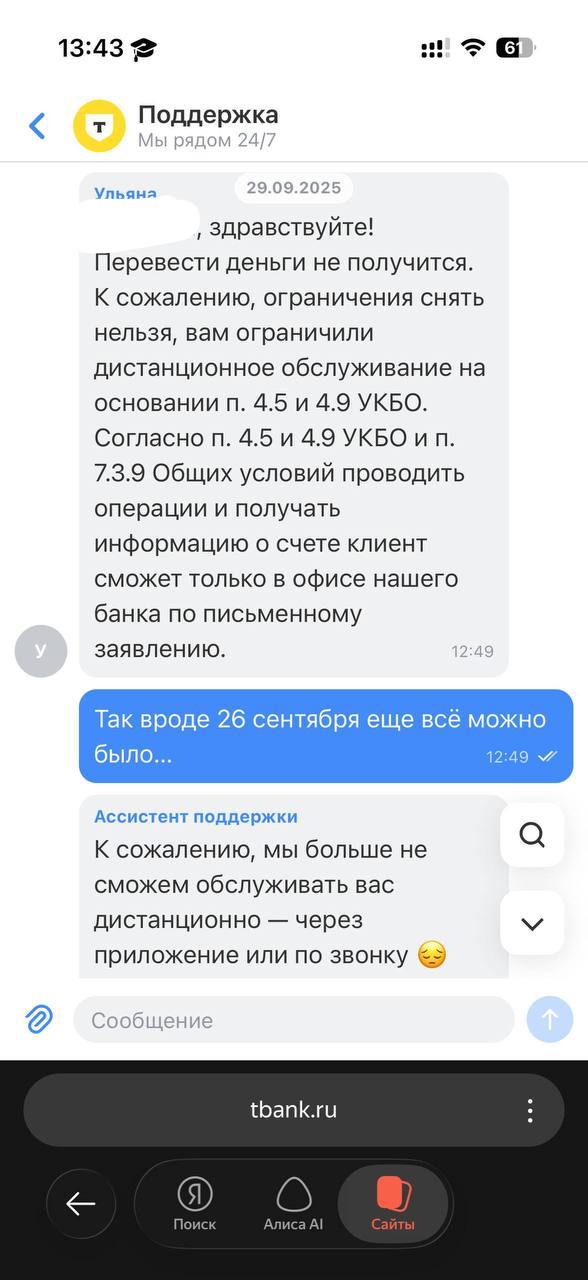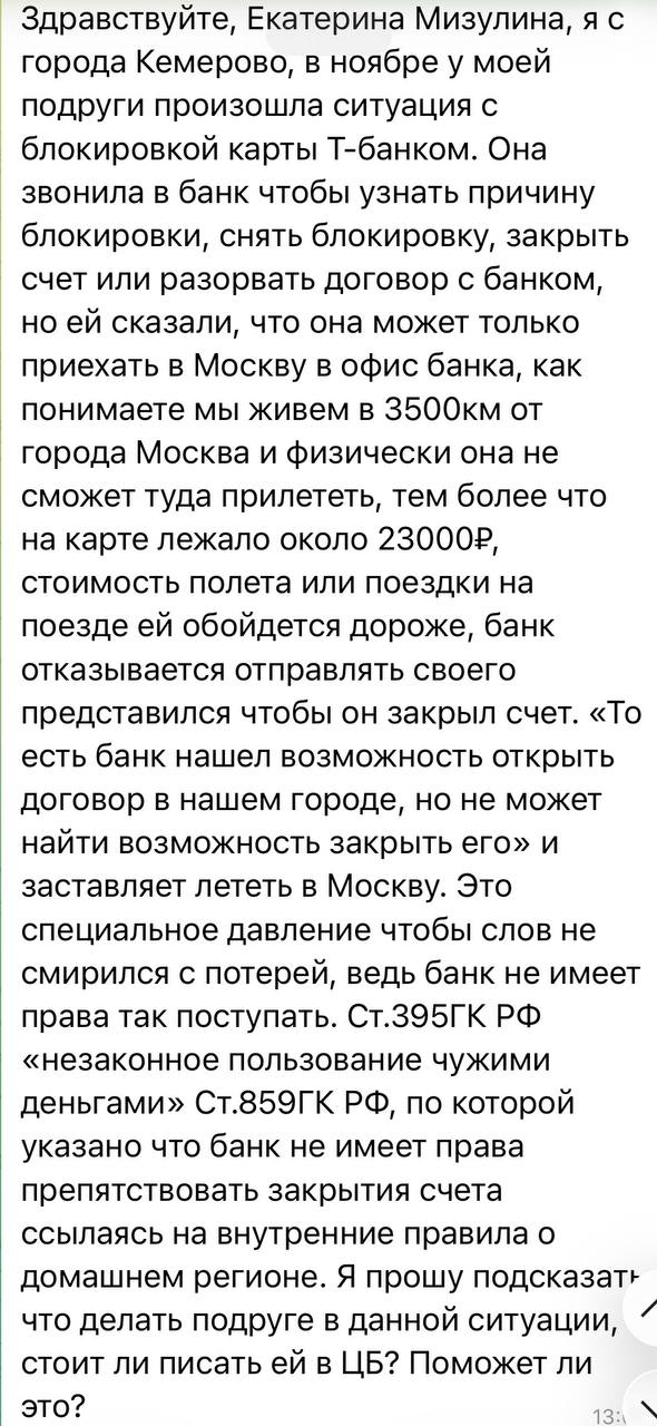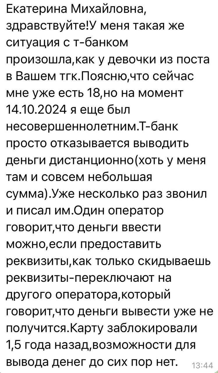 Вот еще два новых обращения от подростков, которым служба поддержки Т-банка предлагала им приехать в офис в Москву. Как ребенок должен добираться из Кемерово?