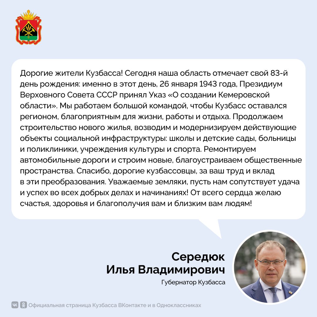 Поздравление с Днем образования Кемеровской области