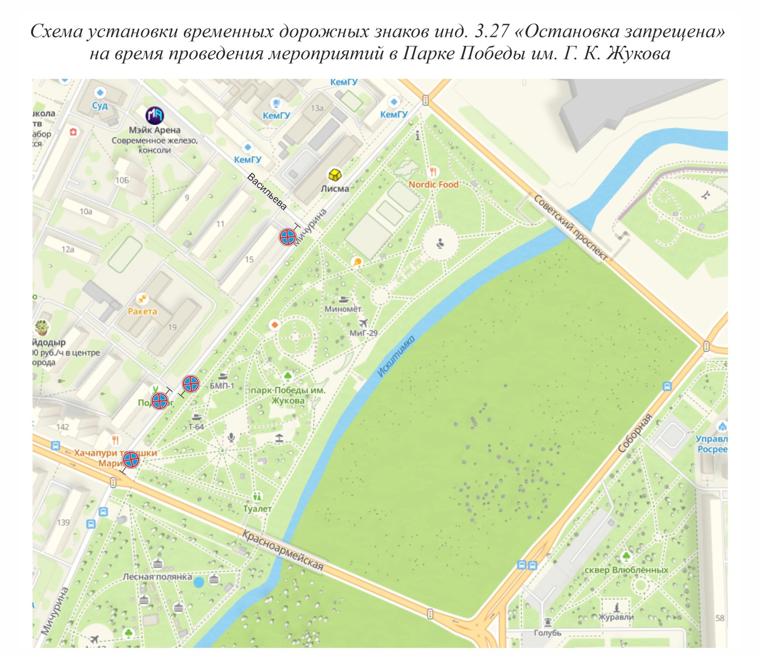 С 20:00 28 января до 13:00 29 января ограничение парковки будет действовать от ул. Красноармейской до ул. Васильева напротив парка Победы им. Г.К. Жукова.