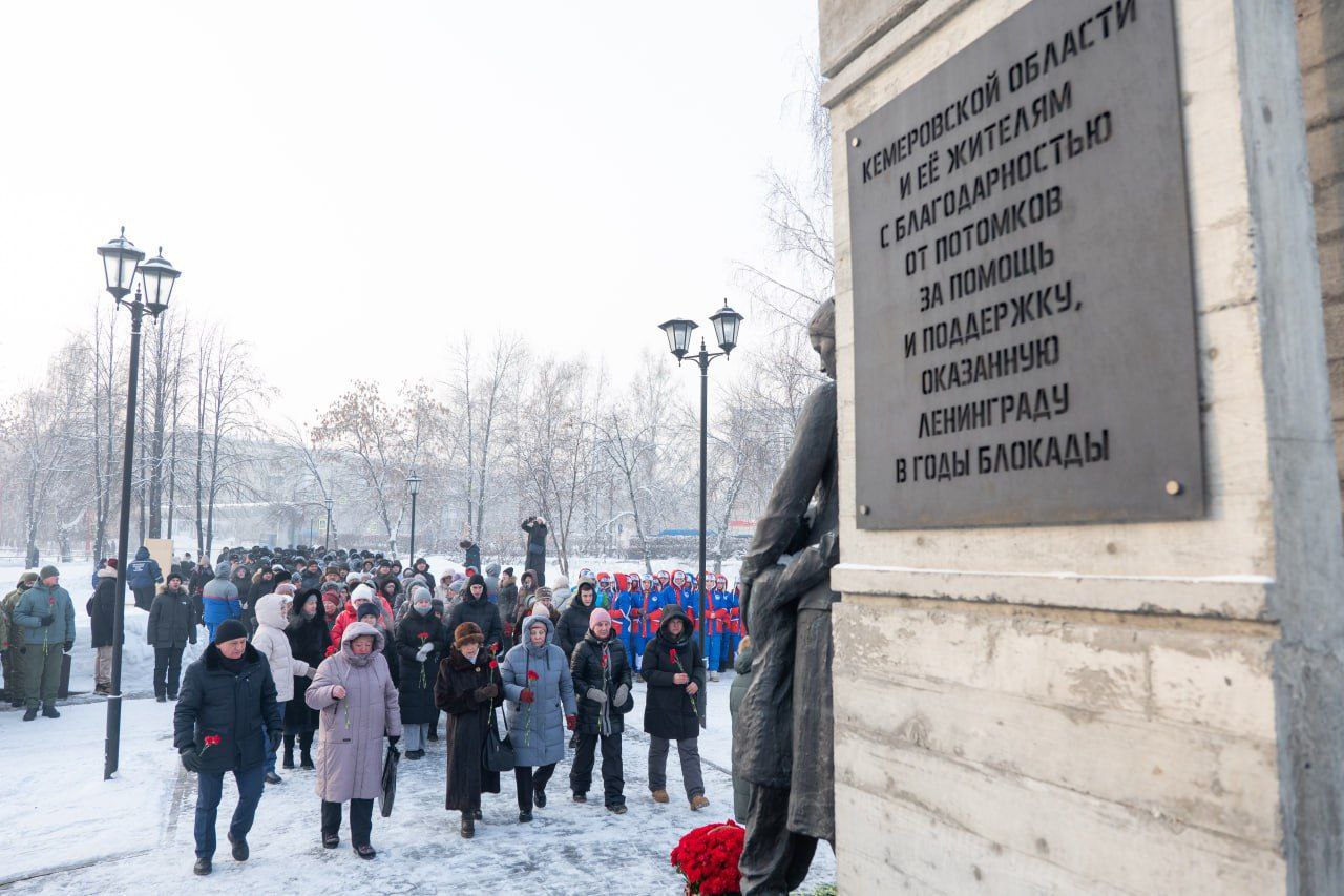 Подвиг жителей и защитников блокадного Ленинграда кемеровчане почтили минутой молчания и возложили цветы. В церемонии принял участие губернатор Кузбасса Илья Середюк.