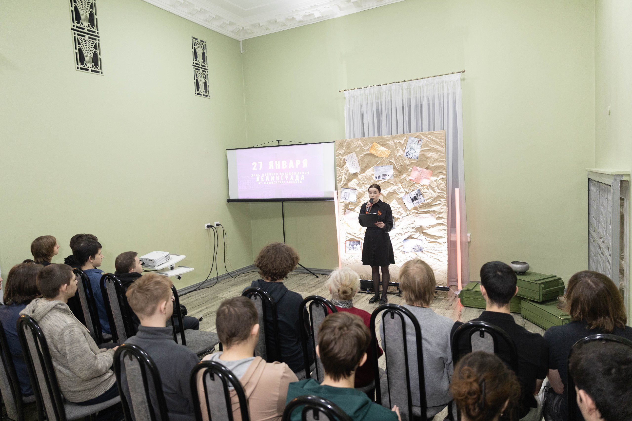 Главным событием встречи стало выступление почётного гостя — бывшей узницы концлагеря Антонины Ивановны Стафеевой. С замиранием сердца студенты слушали стихотворения о блокаде в её исполнении. В каждой строчке — боль, надежда и правда, которую невозможно забыть. Видеть живого свидетеля тех событий и слышать голос из прошлого — это бесценный опыт для каждого из нас.