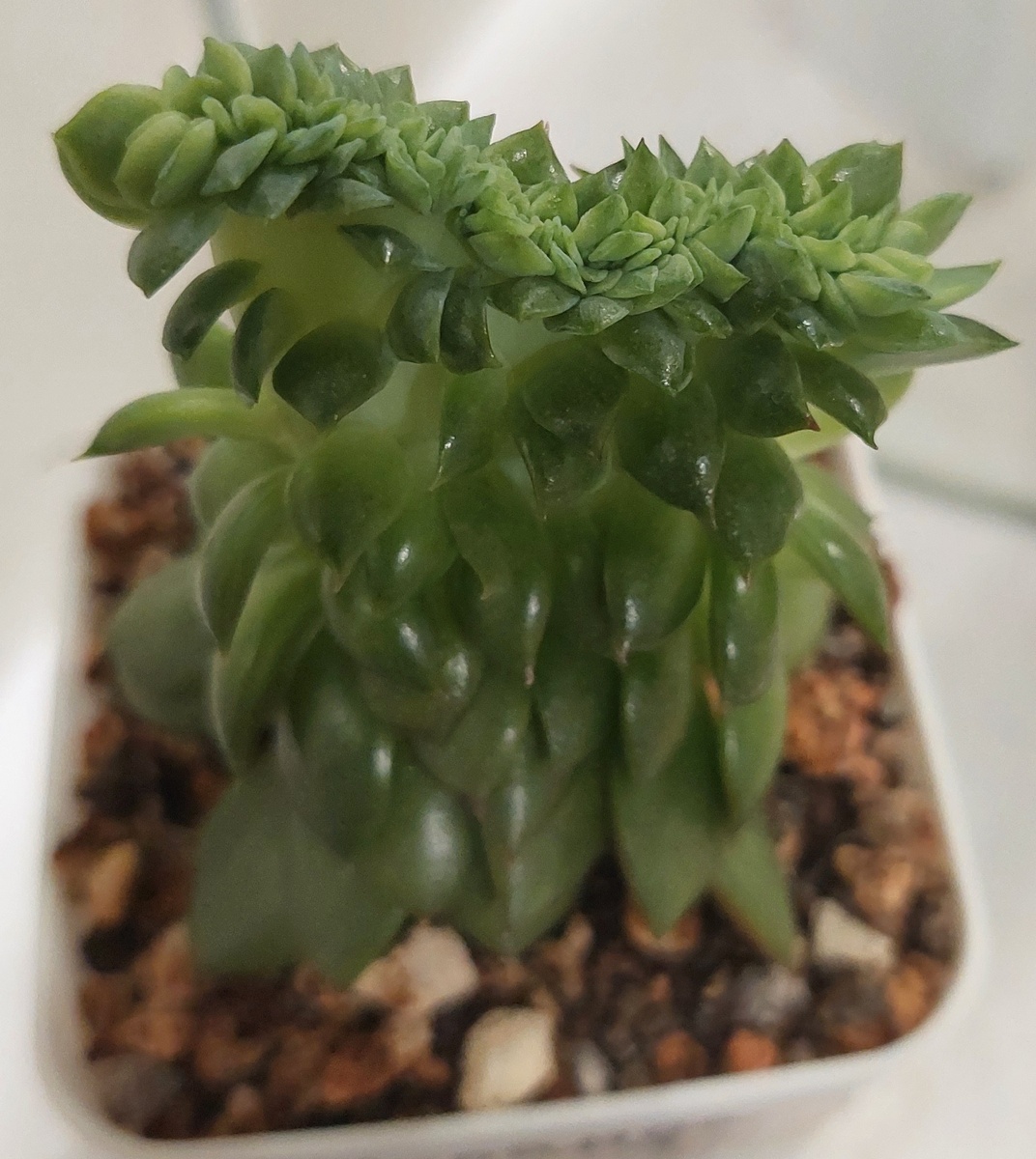 Свежий пример — эхеверия Миранда, которая удивительным образом изменила свой внешний вид в процессе роста. Чаще всего такой экземпляр сам находит своего владельца, и, в итоге, кристатная эхеверия стала настоящим украшением коллекции.