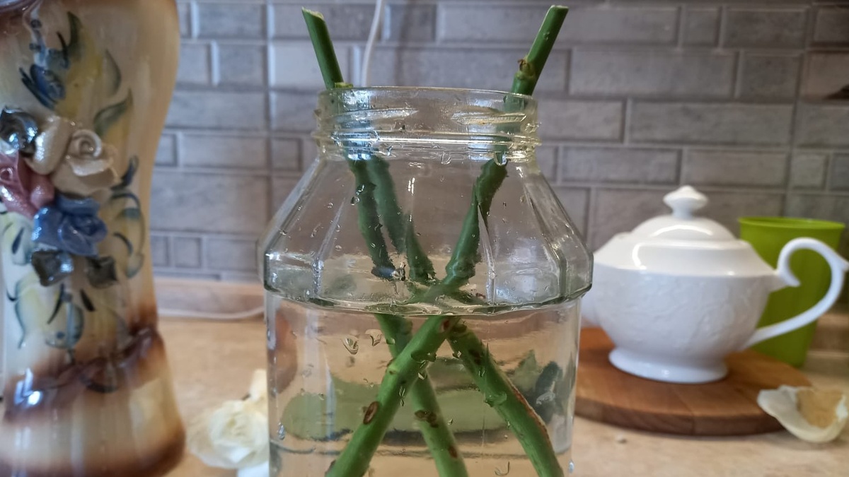 После позитивного опыта с водой было решено опробовать более надёжные методы. Наиболее простым подходом является использование обычного стакана с водой. Достаточно всего лишь следить, чтобы уровень воды не превышал 2-3 сантиметра, и результаты не заставят себя ждать: приживаемость составляет около 60%. А вот сложные методы, такие как укоренение в пятилитровой бутылке или открытом грунте под банкой, достигают до 70% успеха.