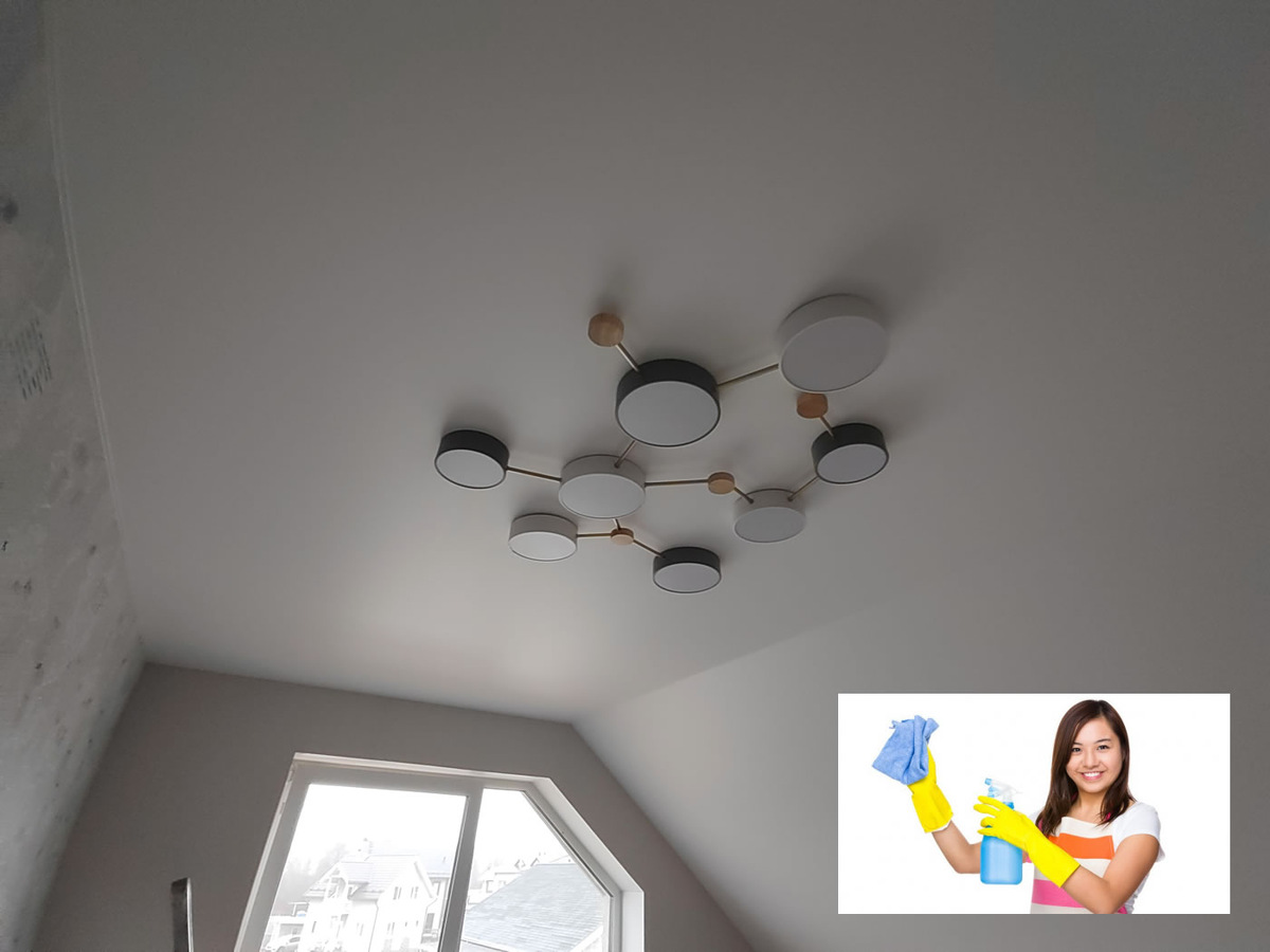 В большинстве случаев натяжные потолки не требуют регулярной очистки благодаря своему антистатическому покрытию, которое не позволяет пыли оседать. Однако, если на потолке появились пятна от шампанского во время праздника или краска при ремонте, может понадобиться очистка.