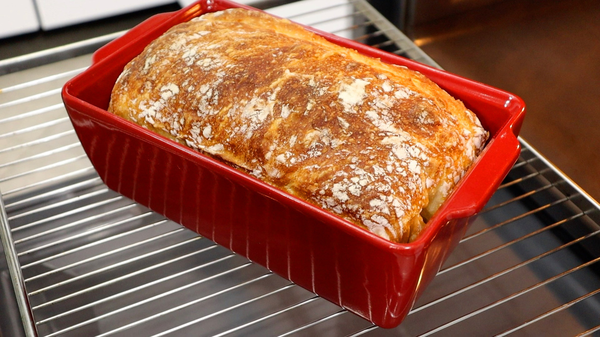 Крышка для формы требуется на первые 35 минут выпечки, после чего она снимается для подрумянивания хлеба.