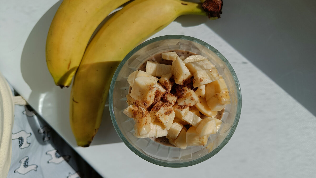 - Два банана (один для пудинга, другой для украшения)