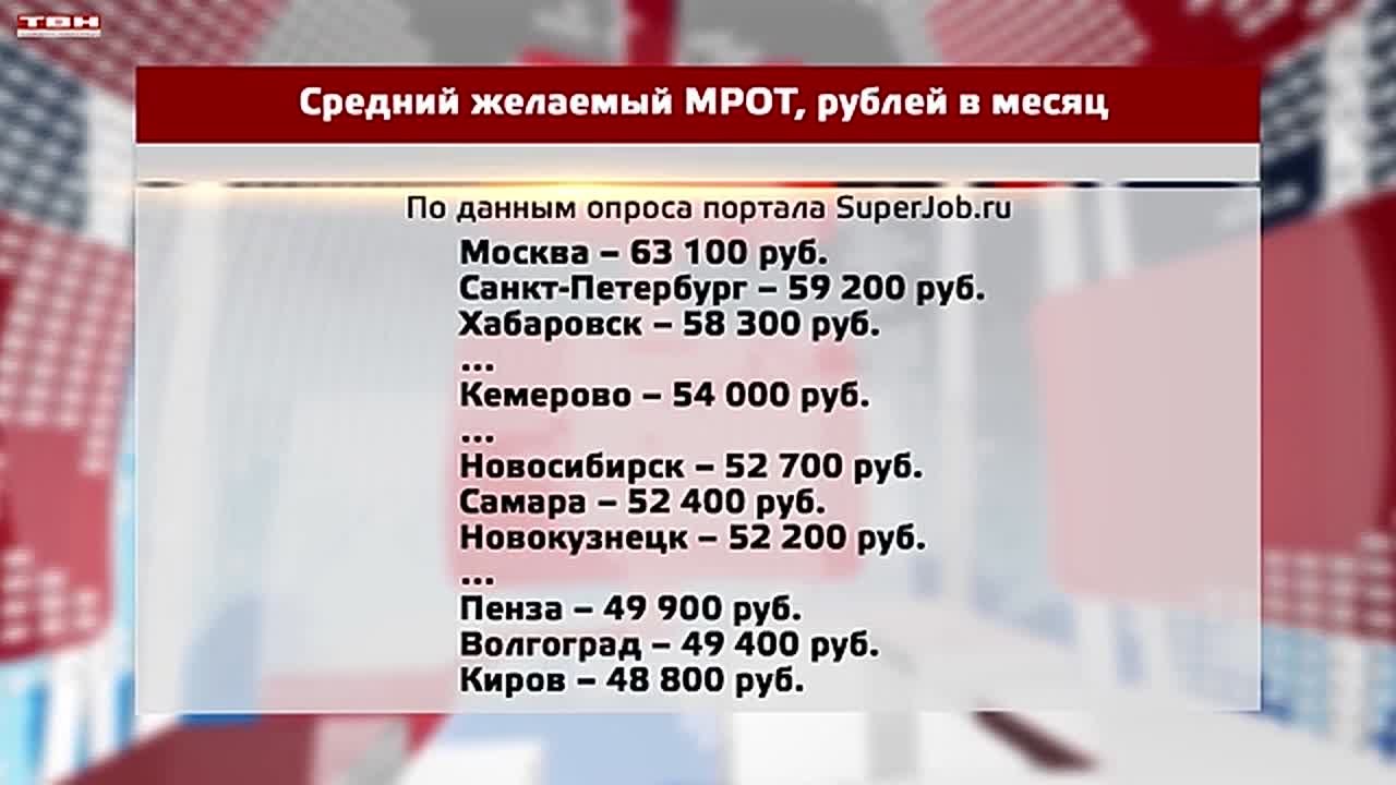Самые большие запросы по уровню МРОТ, разумеется, в Москве и Санкт-Петербурге. В столице минимальный размер оплаты труда должен составлять 63 100 рублей. В Петербурге – почти на 4 тысячи меньше. Самые скромные запросы из крупных городов – у жителей Кирова, Волгограда и Пензы. Им достаточно суммы менее 50 тысяч рублей.