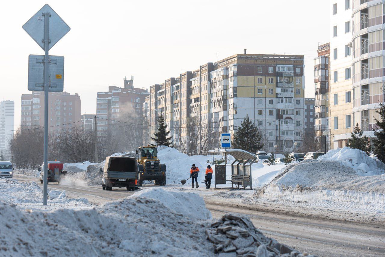 Расчищают дороги частного сектора в п.Боровой и п.Крутой. Вывоз снега запланирован с ул. Сибиряков-Гвардейцев.