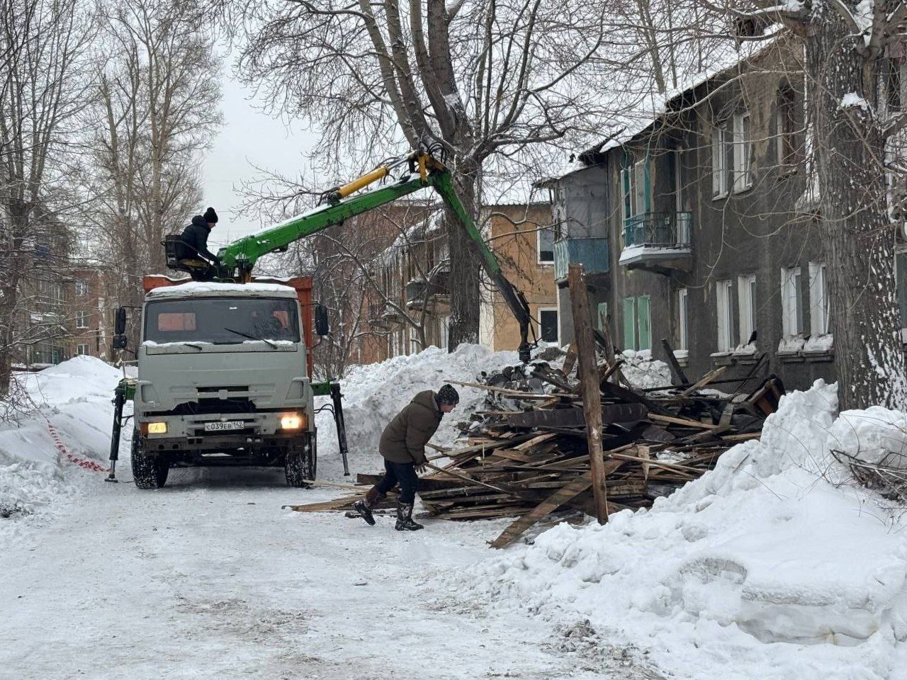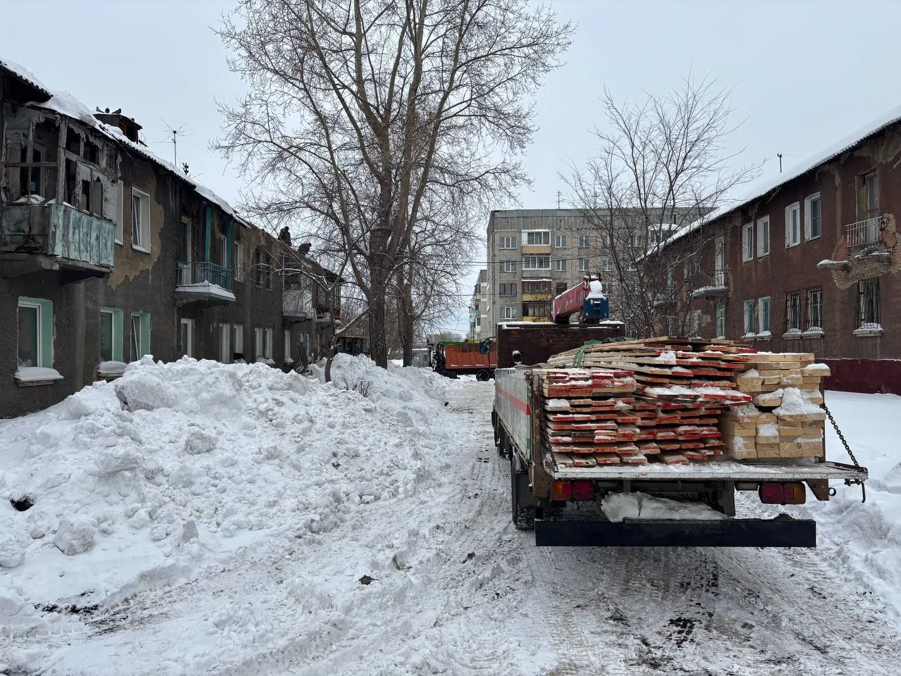Разбор аварийного участка конструкции завершён. На место прибыла машина со стройматериалами, в ближайшее время начнется монтаж поврежденного участка крыши.