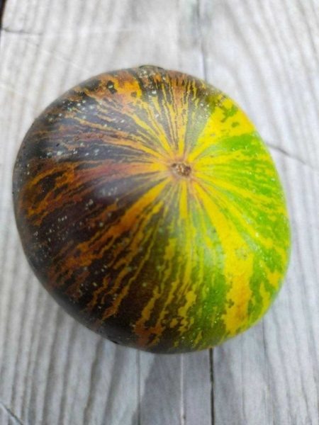 Плоды Гнома Ребеллы — это настоящее украшение любого огорода. Оливковая кожура с яркими оранжевыми и зелеными полосами создает впечатление акварельной живописи, что делает их не только вкусными, но и эстетически привлекательными. Сорт отличается высокой адаптивностью, что позволяет успешно выращивать его как в открытом грунте, так и в теплицах.