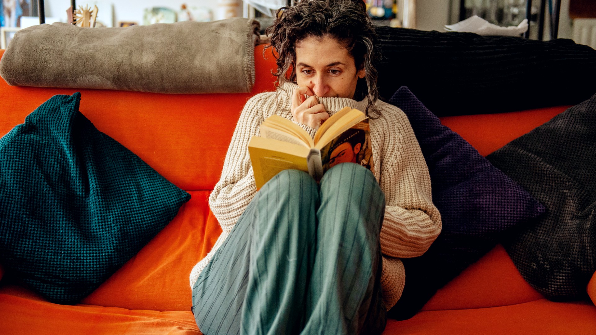 Можно поменять шторы, наволочки на декоративных подушках, добавить дополнительный коврик и плед. У новых вещей должен быть приятный материал: шерсть, крупная вязка.