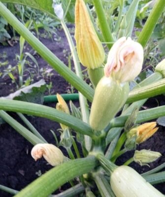 - Кабачки стремительно развивались, радуя глаз не только зелеными листьями, но и множеством завязей. Главное — обеспечить растениям нужное количество воды, что в этом году вовсе не потребовалось, так как дожди приходили вовремя.