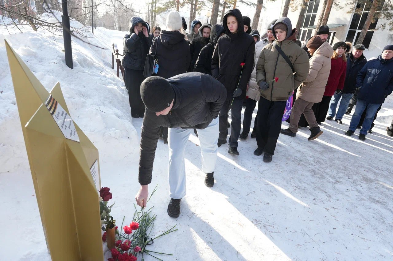 Собравшиеся почтили минутой молчания погибших бойцов и возложили цветы к стеле «Воинам-интернационалистам, участникам локальных событий, погибшим в мирное время».