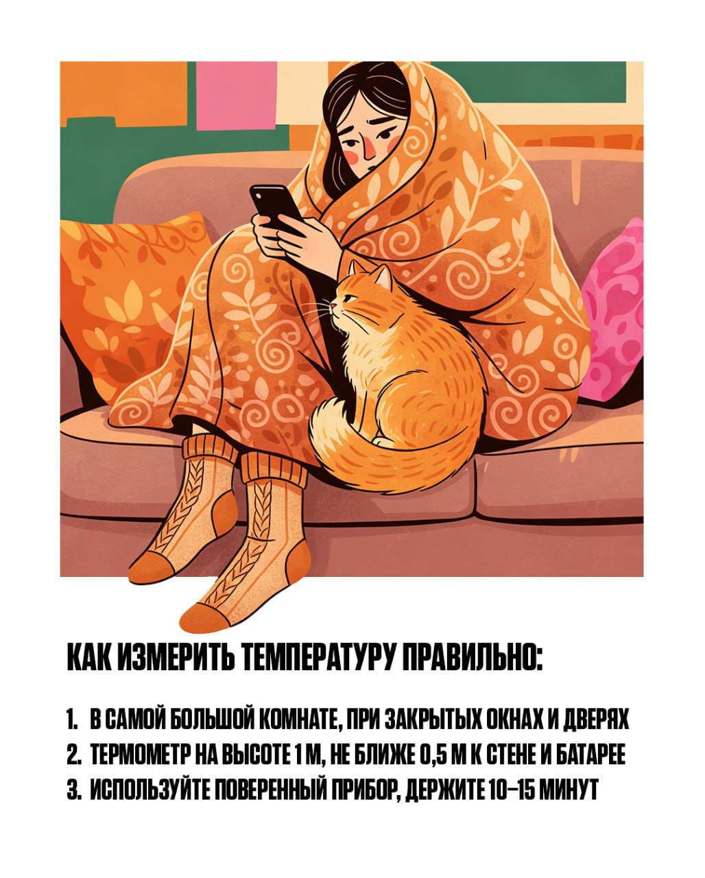О нормативах, порядке самостоятельного замера температуры и действиях при её отклонении – в карточках.