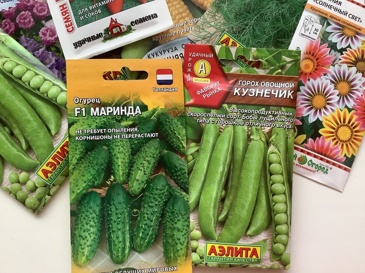 При выборе семян огурцов, томатов и перцев лучше отдать предпочтение гибридным сортам: они демонстрируют большую устойчивость к болезням и неблагоприятным условиям. Однако следует помнить, что с гибридов нельзя собрать свои семена. Поэтому рекомендуется сохранять пакетики от посаженных семян. Если один из сортов оказался удачным, например, огурцы, то впоследствии стоит приобрести те же самые семена.