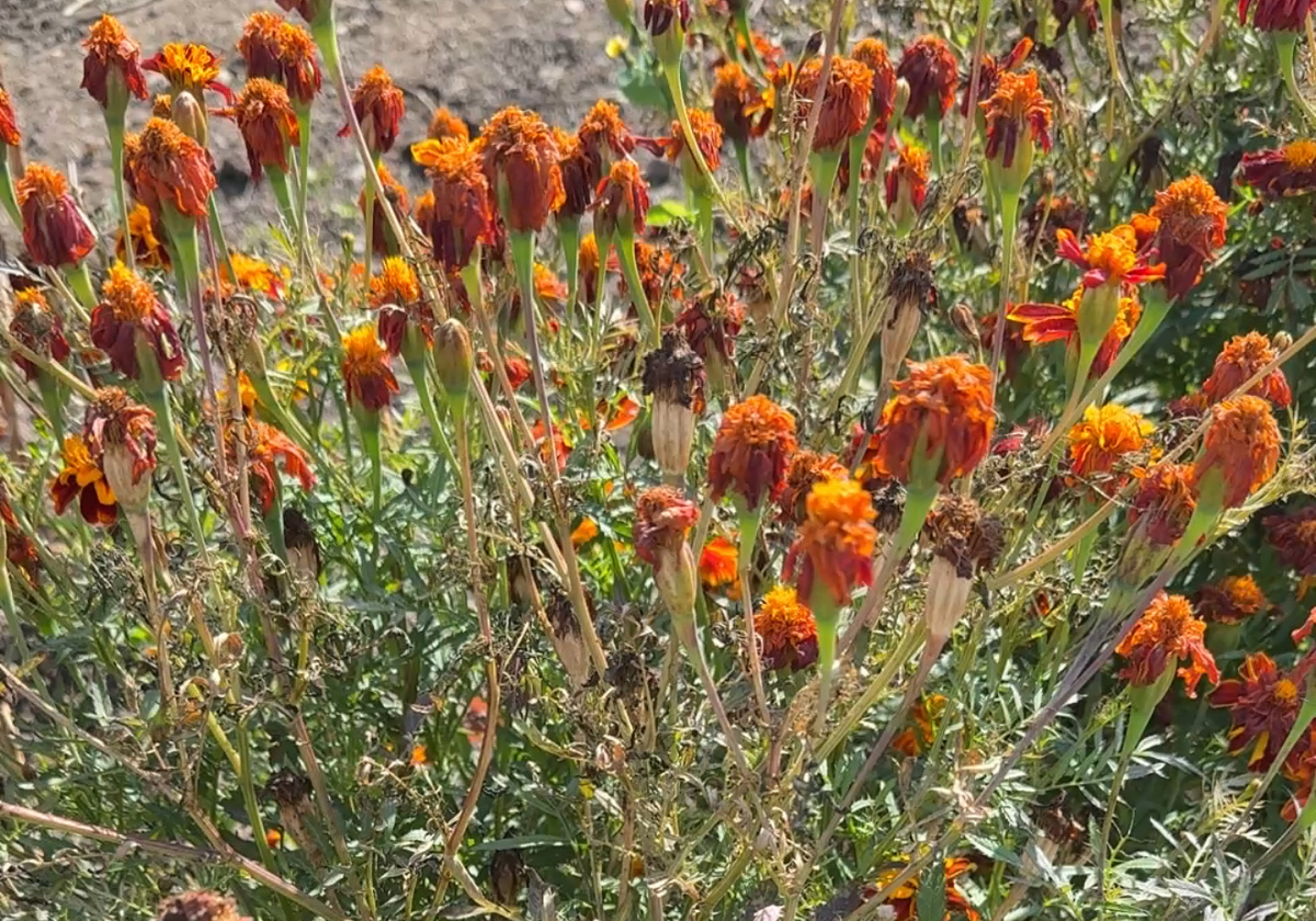 Нет необходимости прилагать особые усилия для того, чтобы оставить увядшие бархатцы на грядке. Достаточно дождаться полного увядания. Даже если стебли начали желтеть, листья всё еще работают на благо почвы и соседних растений. Вы получите: