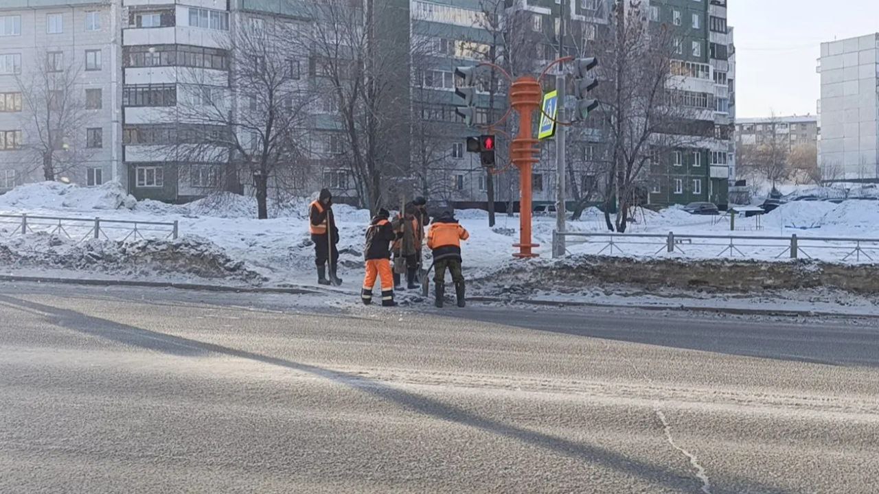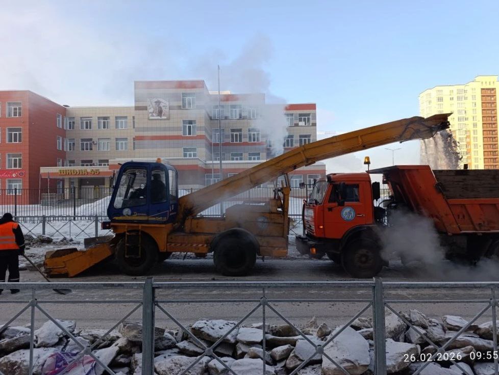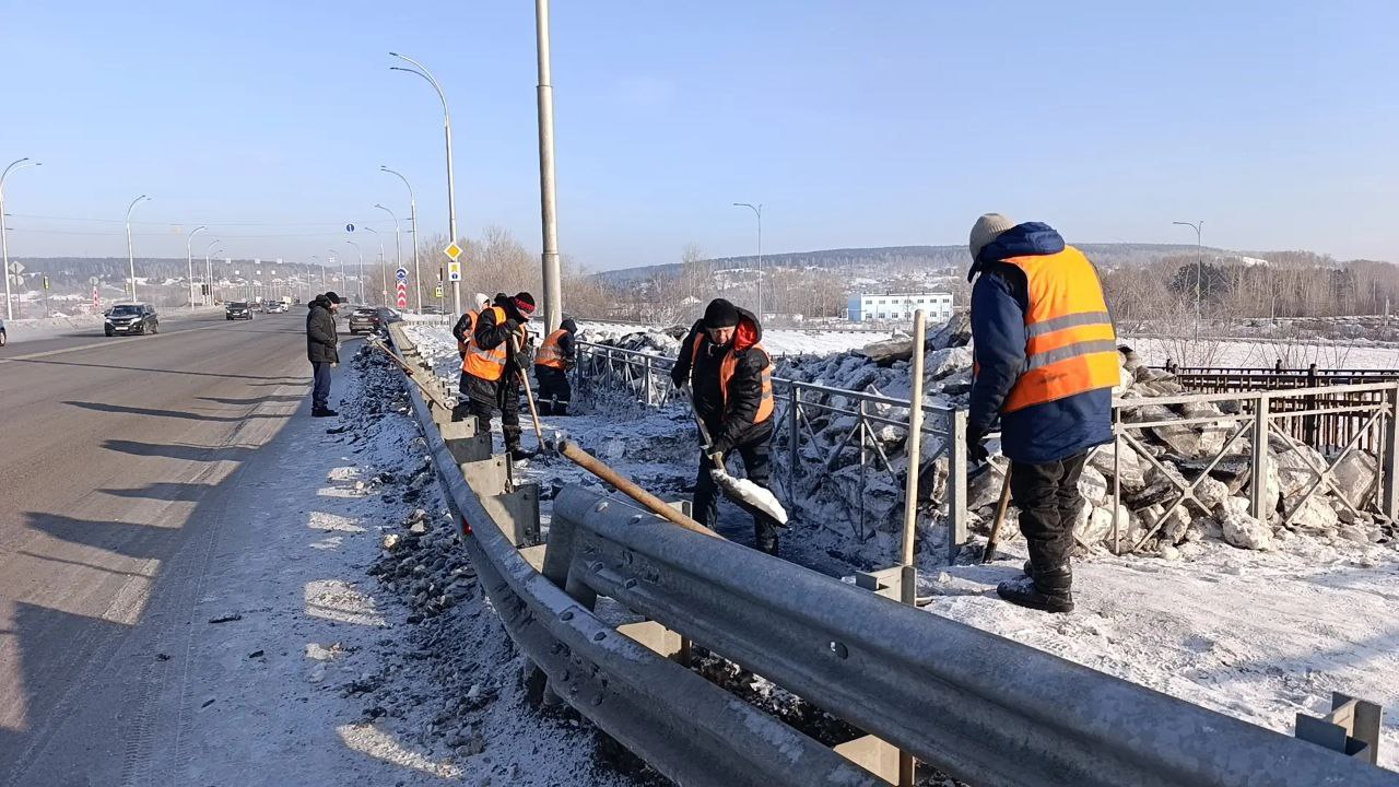 Вывозят снег с проезда от просп. Московского, 14 до просп. Притомского в районе школы № 45, ул. Антипова, пер. Антипова от ул. Нахимова до ул. Антипова, ул. Заводская, ул. 4-я Цветочная, ул. Попова, просп. Михайлова. Мобильные бригады обрабатывают тротуары, пешеходные переходы и остановочные площадки противогололёдными материалами.