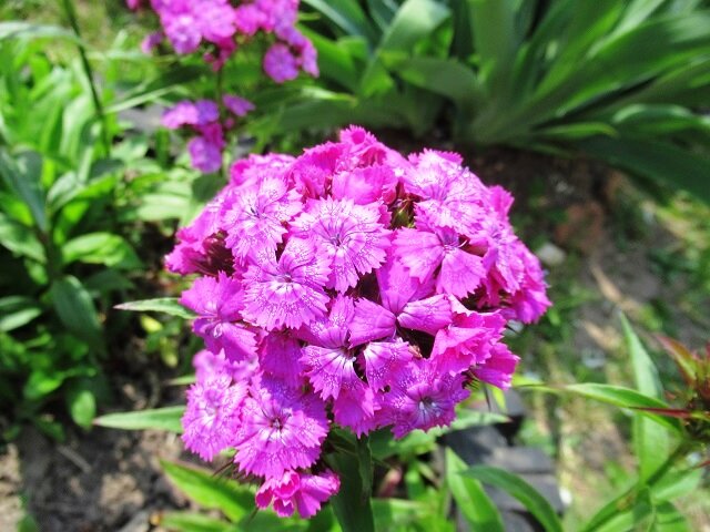 Цветы гвоздики формируют соцветия в виде зонтиков, в которые сгруппированы мелкие цветочки самых разнообразных оттенков. Прошлым летом гвоздику было посеяно в автомобильной покрышке в начале июля на постоянное место, что позволило растениям установить глубокое корневое строение.