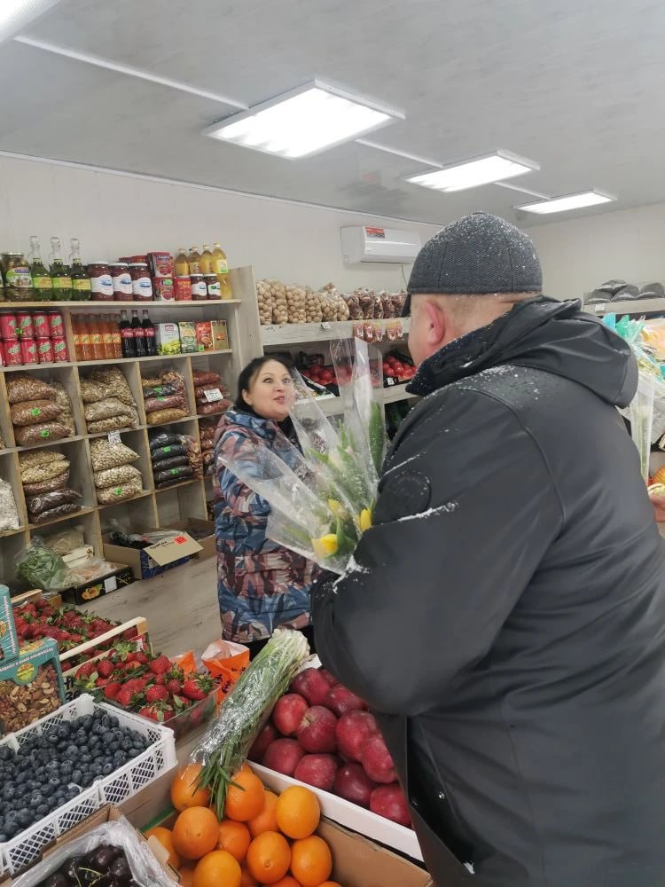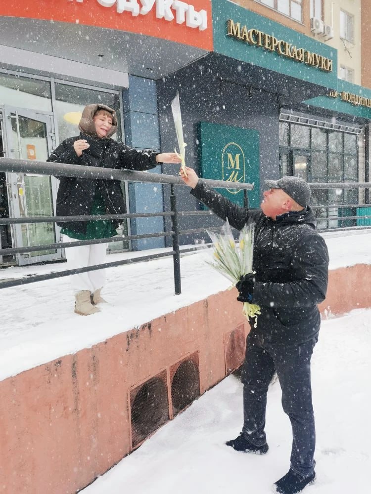 На бульваре Строителей женщинам, девушкам, продавцам окрестных магазинов они дарили цветы и тёплые пожелания в честь приближающегося праздника. К мужчинам присоединились подрастающие джентльмены из школы №12 им. В.Д. Волошиной. Ребята вручали поздравительные открытки, изготовленные своими руками.