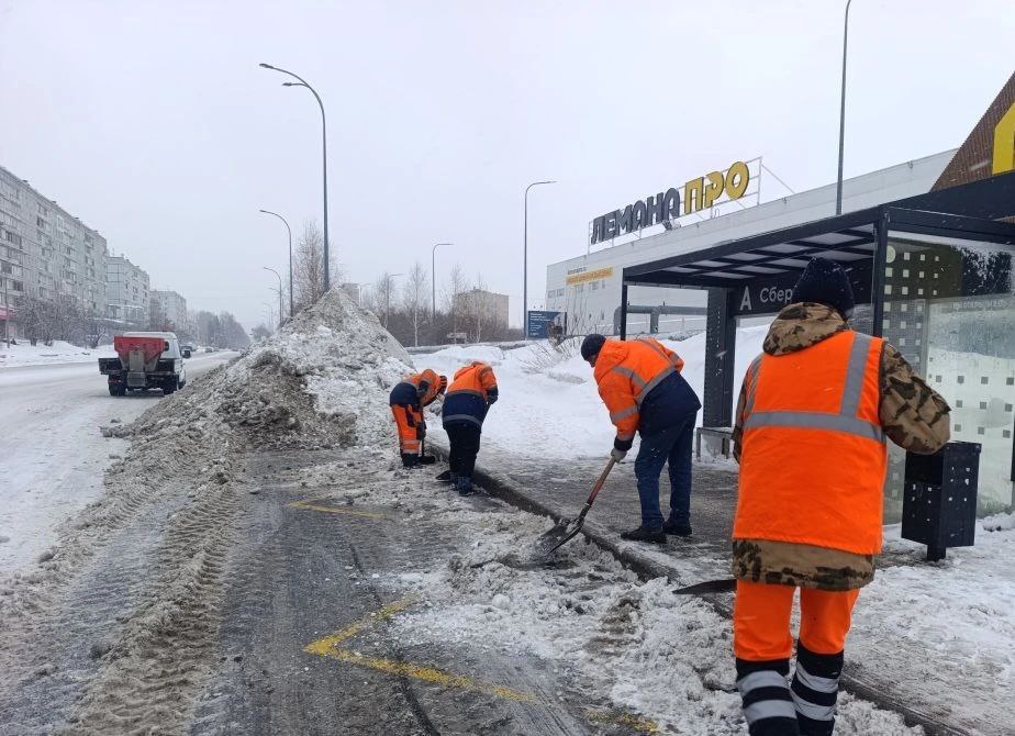В Кемерове мобильные бригады расчищают от снега тротуары и пешеходные переходы
