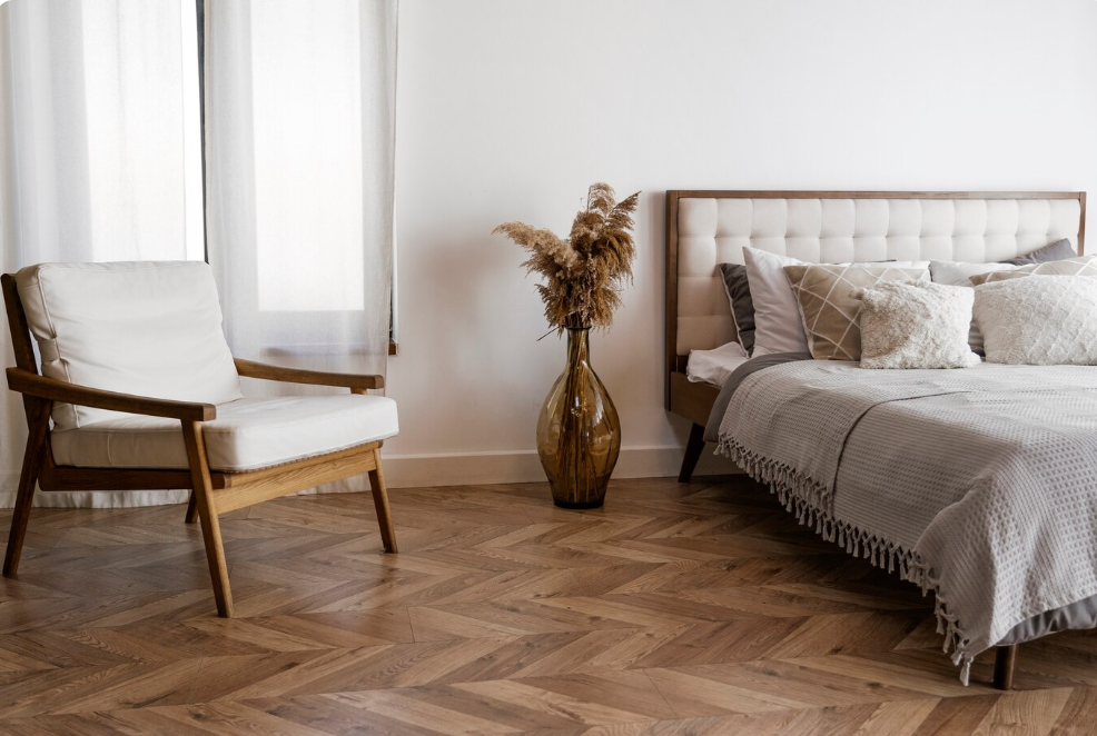Стоит обратить внимание на пробковые полы в стиле «ёлочка». Они укладываются как на клей, так и с помощью замковой системы. Это идеальный вариант для тех, кто ценит натуральные материалы. Пробковые полы обеспечивают тепло и комфорт, идеально подходят для спален и детских комнат.
