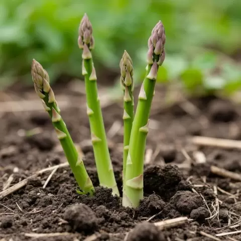 - Уход и сбор урожая: Спаржа нуждается в регулярном поливе, особенно в начале вегетационного периода. Соблюдение влажности почвы и борьба с сорняками помогут растению расти здоровым. Первые побеги появятся через два года, и их можно будет собирать, когда они достигнут 15-20 см.