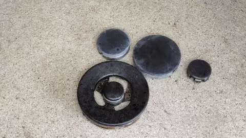 3. После того как время истечет, достаньте конфорки и примените жесткую сторону губки или металлический скребок для удаления остатков жира. В случае, если на конфорках остались толстые слои, используйте нож.