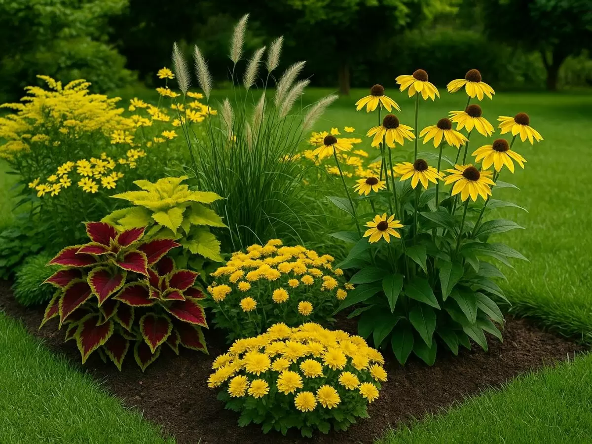 Не забывайте о декоративнолиственных растениях: они могут поддерживать фирменный стиль даже после окончания цветения. Добавьте кустарники и деревья, например, с интересной корой, чтобы ваша клумба сохраняла выразительность круглый год.