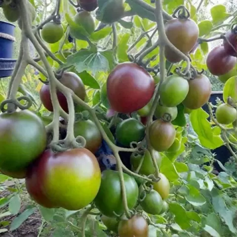 Эстетическая красота сорта достойна внимания. Мощный куст высотой до двух метров может превращаться в настоящую инсталляцию, когда плодовые кисти формируются в виде роскошных бус. Плоды вырастают небольшими, сливовидными и имеют неординарный изумрудно-шоколадный цвет, что делает их полноценным украшением на столе и в банках.