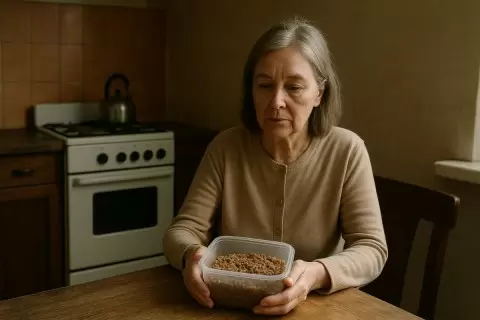Её супруг, Пётр Васильевич, погружен в готовку, тихо занимаясь домашними хлопотами. Каждый вечер у них за ужином гречка – с тушёнкой или просто с маслом. Маша замечает эти подробности привычной рутине и улыбается, хотя улыбка становится всё более сдержанной.