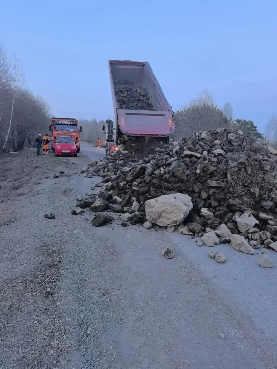 Работы идут в круглосуточном режиме. Уже сделали технологический проезд для спецтехники. Следующий шаг — обеспечить безопасный проезд для легковых машин.