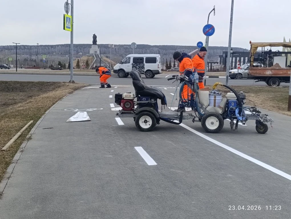 Заливка трещин битумом проведена на ул. Терешковой, ул. Аллейная, ул. Рекордная, ул. Потемкина, ул. Александра Матросова. Сегодня специалисты проводят эту работу на ул. Мариинская, ул. Ишимская.