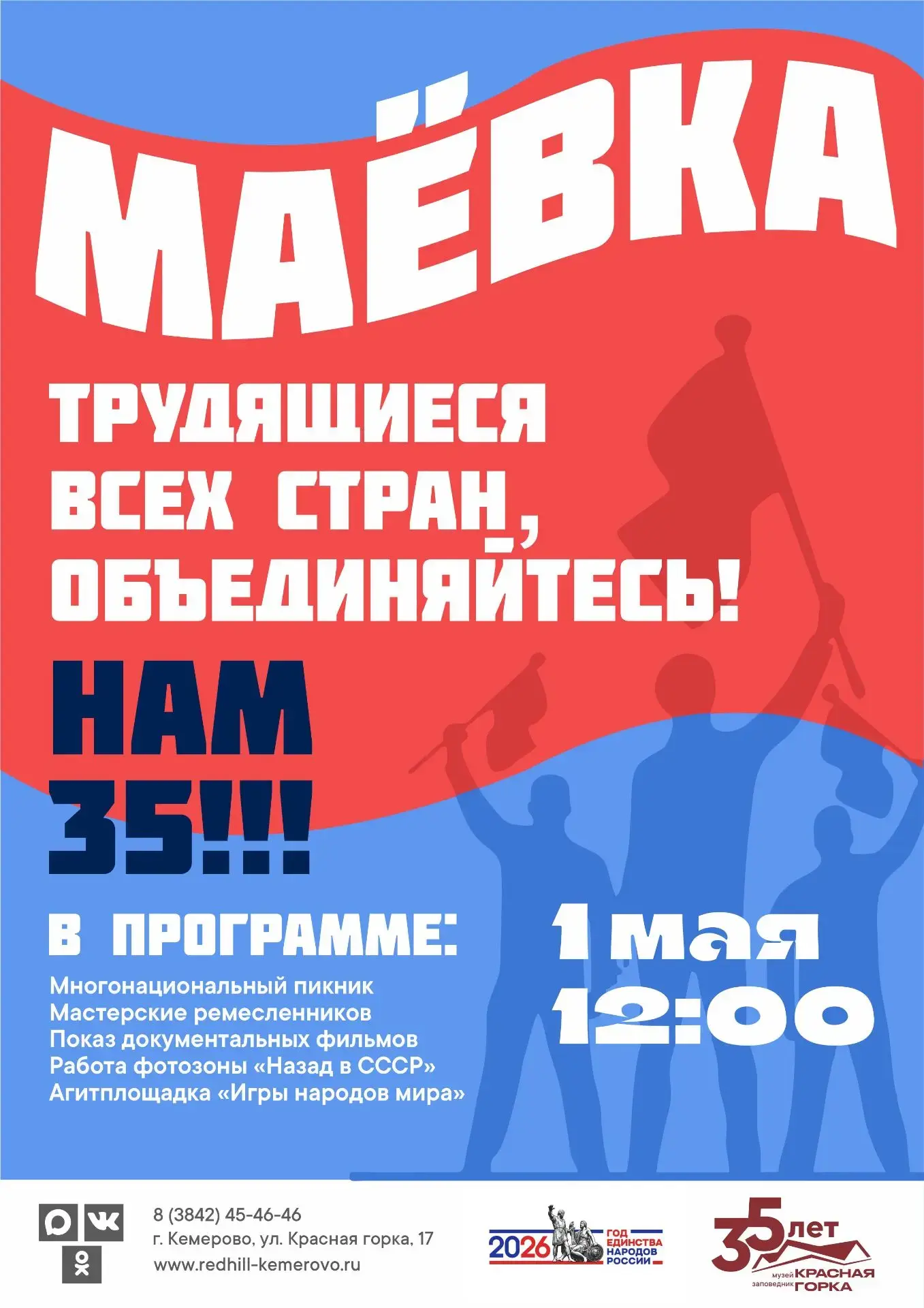 Кемеровчан и гостей города приглашают 1 мая в музей-заповедник «Красная Горка» на многонациональный пикник «Трудящиеся всех стран, объединяйтесь - нам 35!»