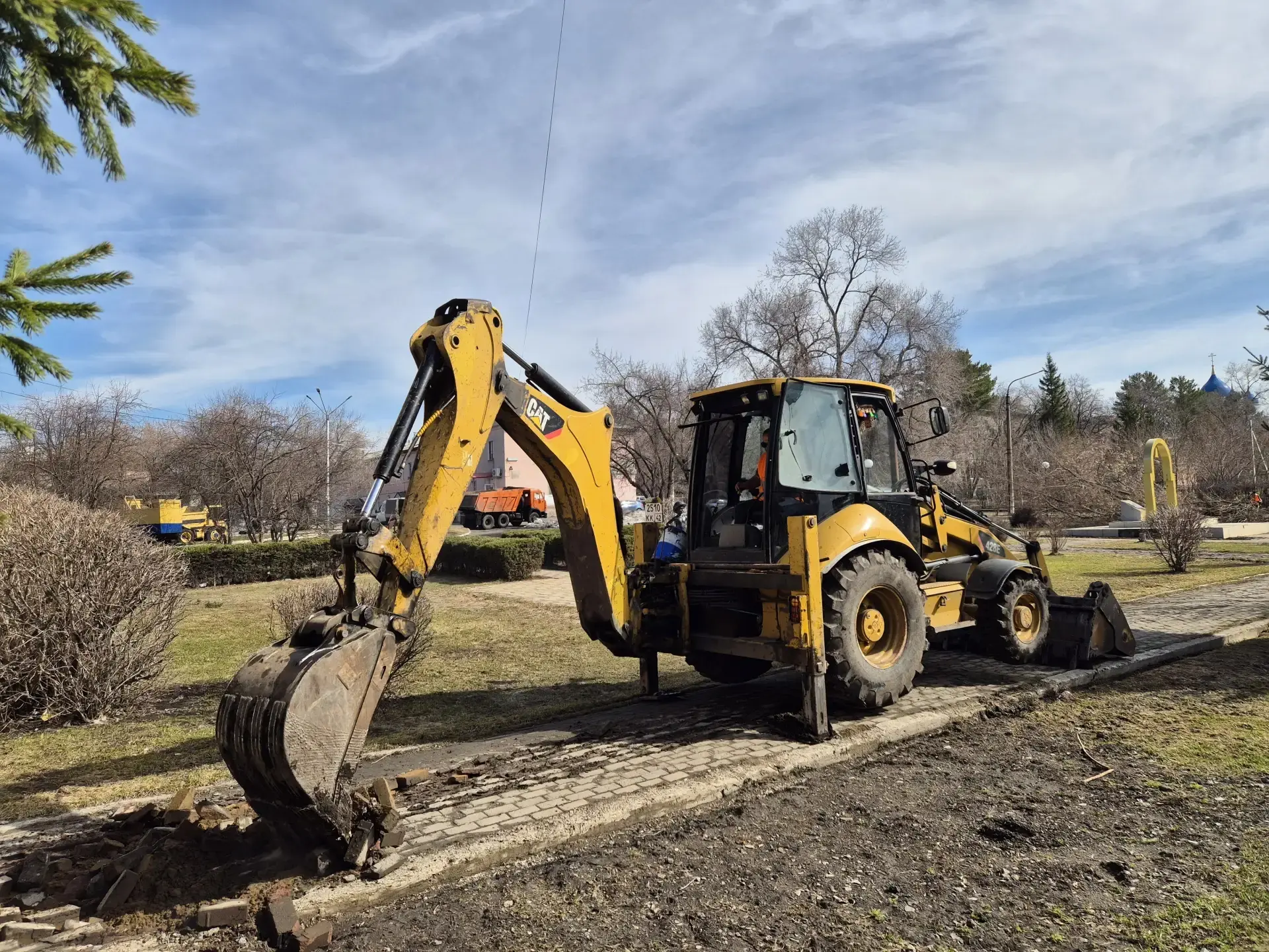 На прошлой неделе аналогичные работы начались в Кировском - в сквере напротив ДК имени 50-летия Октября.