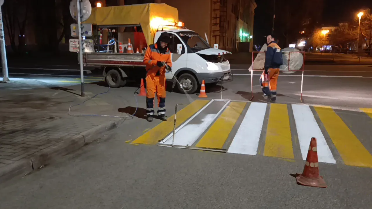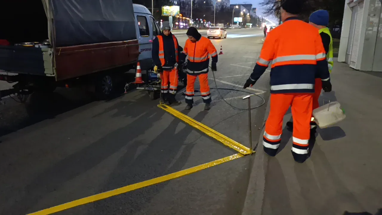 Дорожную разметку наносили на ул. Дзержинского, ул. Весенняя, ул. Ноградская, ул. Мичурина, ул. Коломейцева, пр. Химиков, пр. Ленина,
