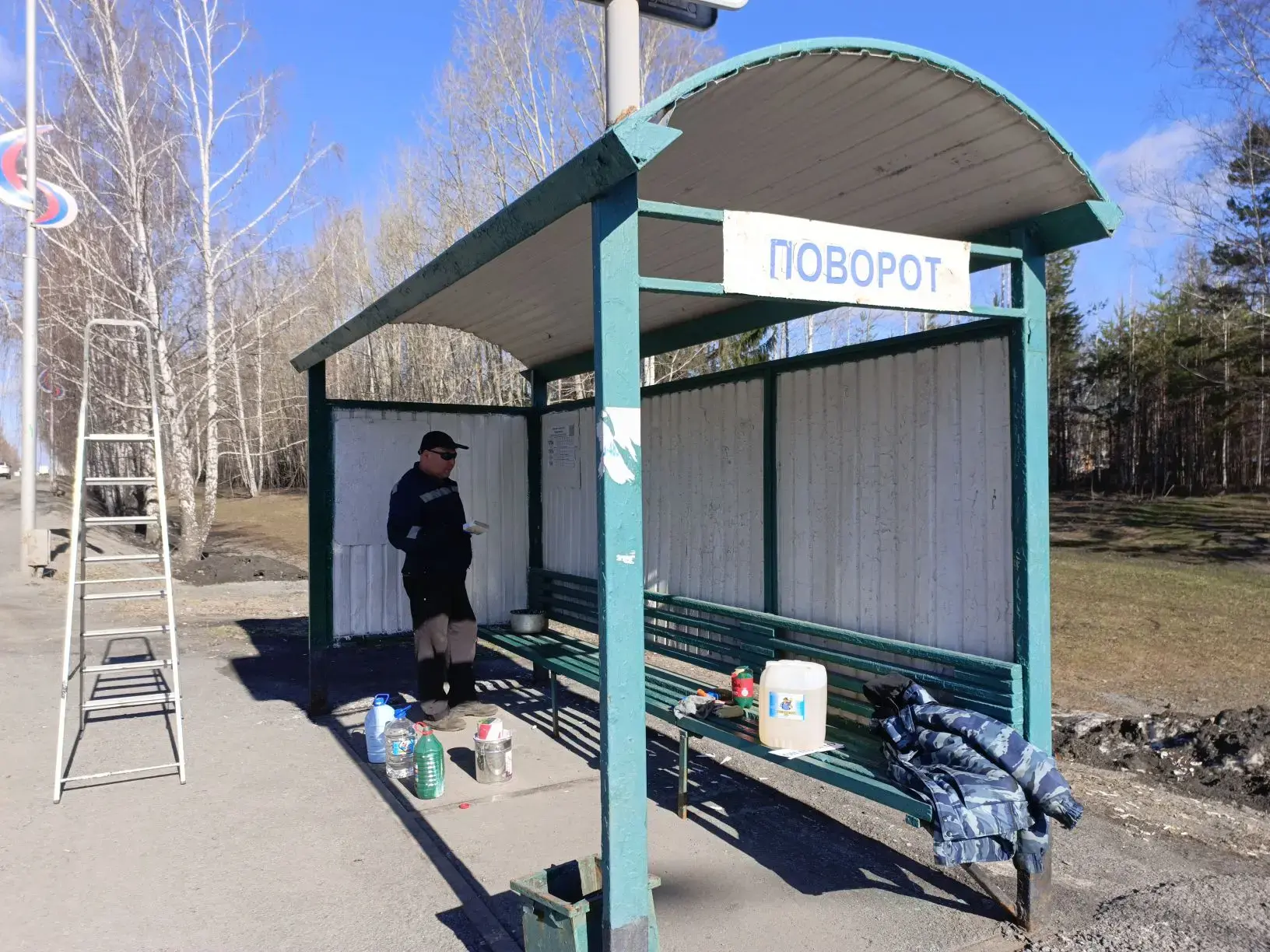 Покраской остановочных павильонов специалисты занимаются на ул. 50 лет Октября, ул. Ю. Двужильного, пр. Химиков, ул. 40 лет Октября.