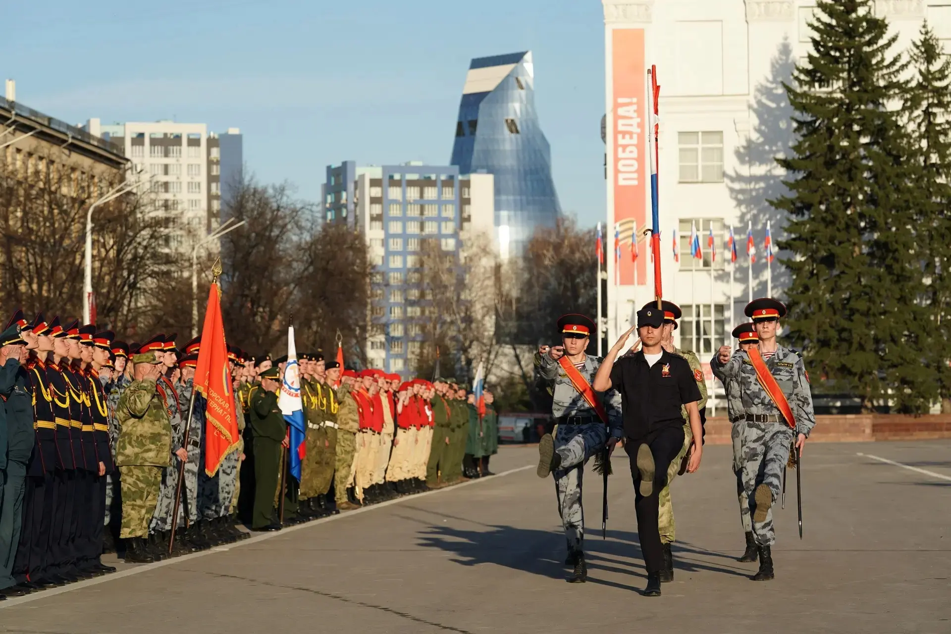 На площади Советов завершилась первая репетиция торжественного марша, посвящённого 81-й годовщине Победы в Великой Отечественной войне