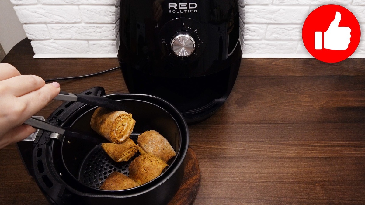 Рулетики расположить в чаше аэрогриля и выпекать при температуре 180°C в течение 15 минут. Золотистая корочка и нежный внутренний текст будут по достоинству оценены семьей и друзьями.